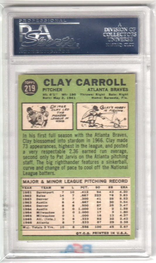 CLAY CARROLL 1967 Topps #219 PSA 8 NM-MT - BRAVESRegular price $19.99 USDRegular priceUnit price / per-