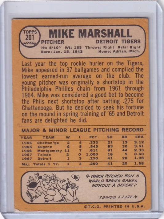 1968 Topps Baseball #201 Mike G Marshall - Detroit Tigers RCRegular price $2.61 USDRegular priceUnit price / per-