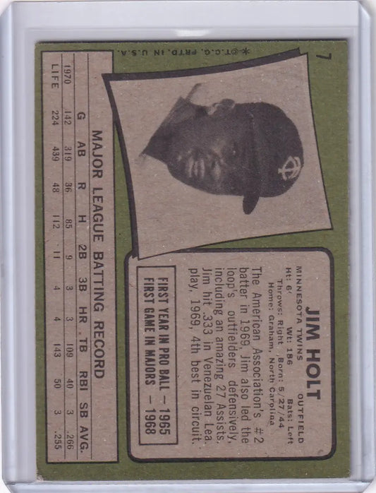 1971 Topps Baseball #7 Jim Holt - Minnesota Twins RC