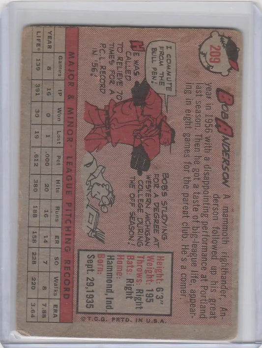1958 Topps Baseball #209 Bob Anderson - Chicago Cubs RC