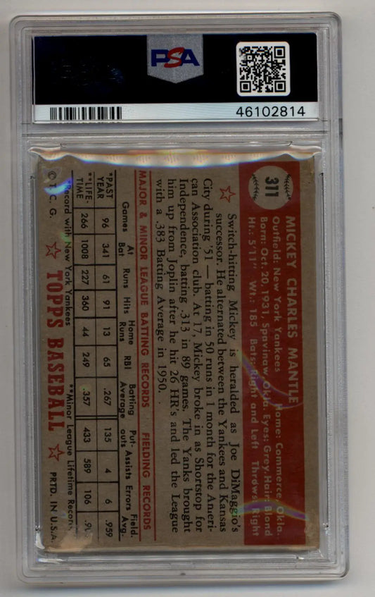 Mickey Mantle 1952 Topps Rookie #311 PSA 2 Good