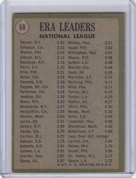 1971 Topps Baseball #68 NL 1970 ERA Leaders - Seaver / Simpson / Walker