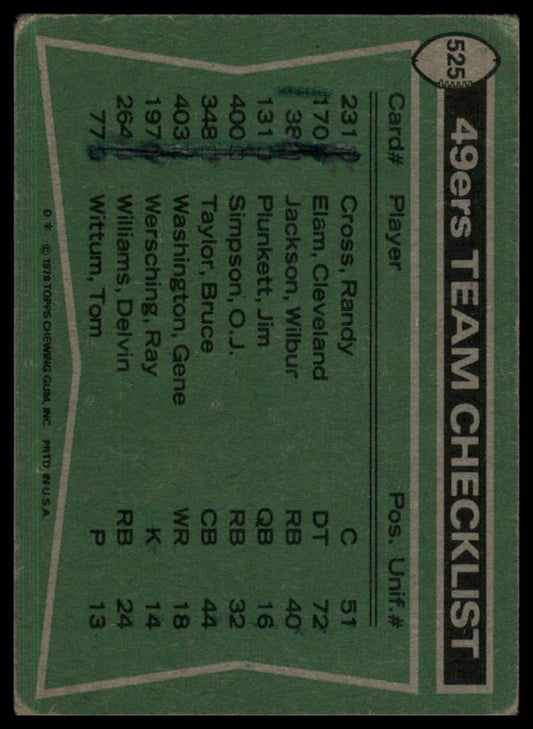 1978 Topps Team Checklist Gene Washington Delvin Williams Cleveland Elam #525 49