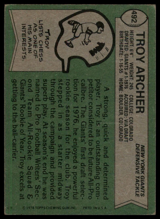 1978 Topps Troy Archer #492 New York Giants Football Card NFL Sports