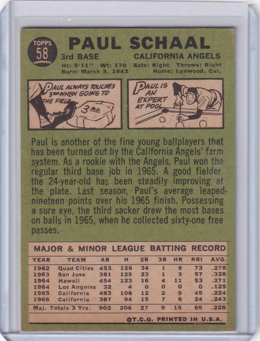 1967 Topps Baseball #58a Paul Schaal - California Angels