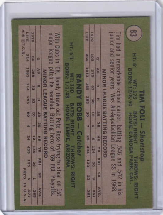 1971 Topps Baseball #83 Mets Rookies - Tim Foli / Randy Bobb RC