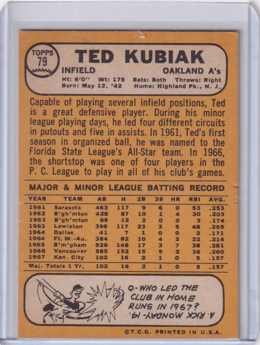 1968 Topps Baseball #79 Ted Kubiak - Oakland Athletics RC