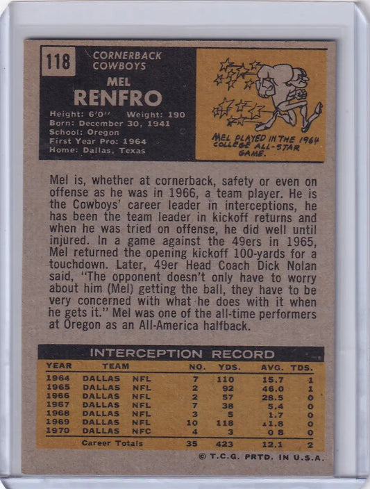 1971 Topps Football #118 Mel Renfro - Dallas Cowboys