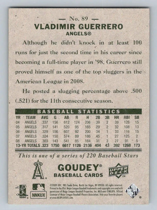 2009 Upper Deck Goudey #89 Vladimir Guerrero Los Angeles Angels