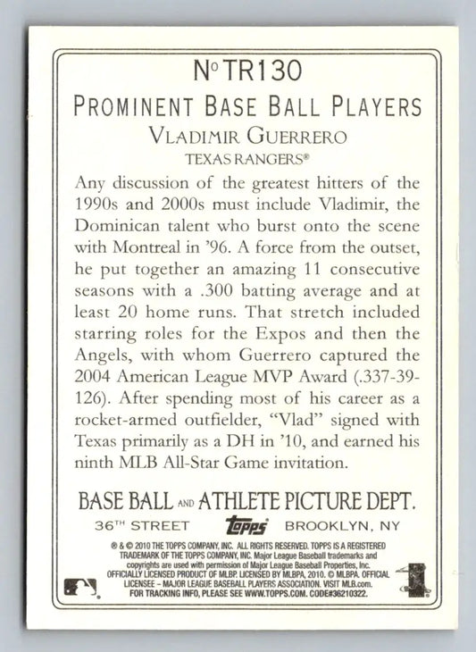 2010 Topps Update #TR130 Vladimir Guerrero Turkey Red Texas Rangers