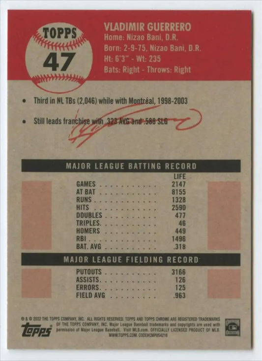 2022 Topps Chrome Platinum Anniversary #47 Vladimir Guerrero NM-MT Montreal Expos Baseball Card
