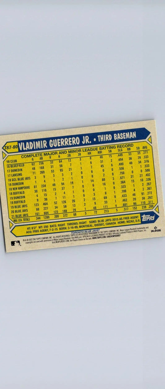 2022 Topps Vladimir Guerrero Jr. 1987 Topps Baseball 35th Anniversary