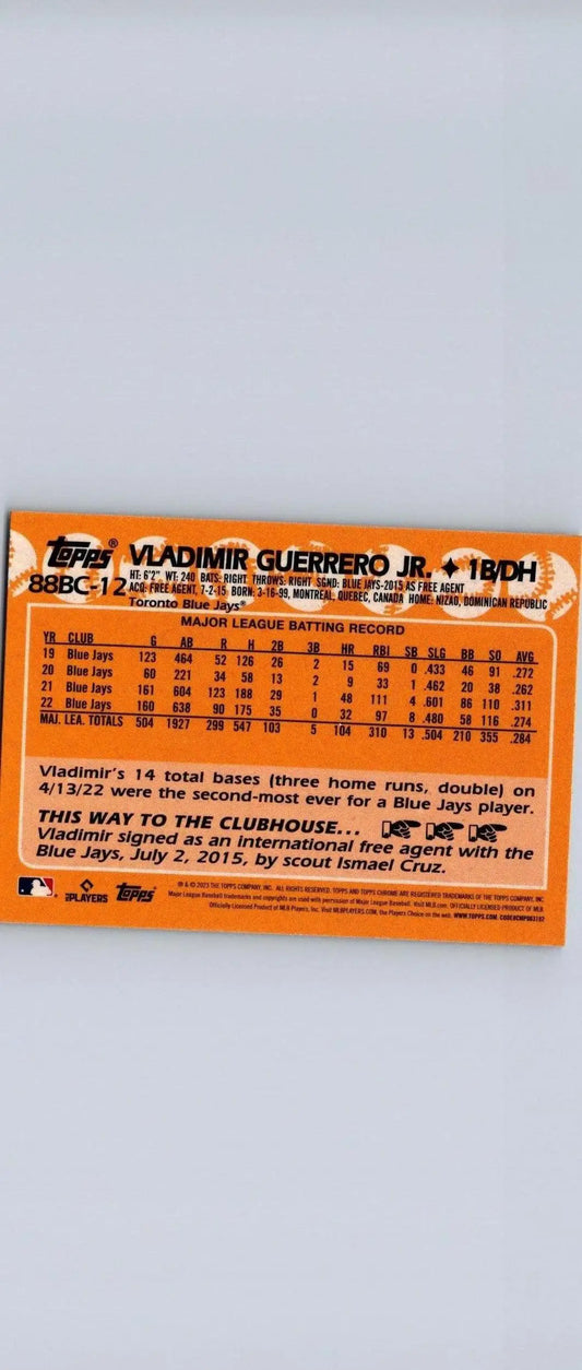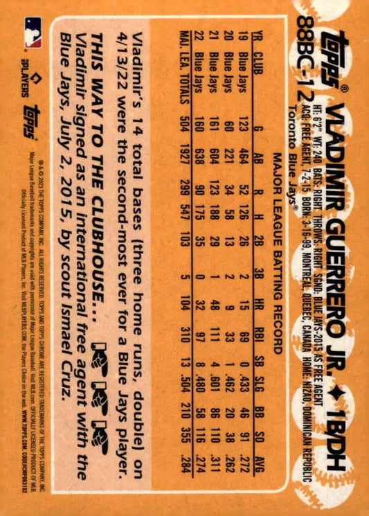 2023 Topps Chrome 1988 Baseball Refractor #88BC-12 Vladimir Guerrero Jr. NM-MT Toronto Blue Jays Baseball Card