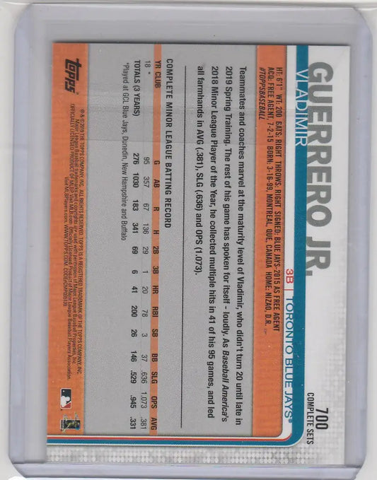 2019 Topps Complete Set #700 Vladimir Guerrero Toronto Blue Jays Batting