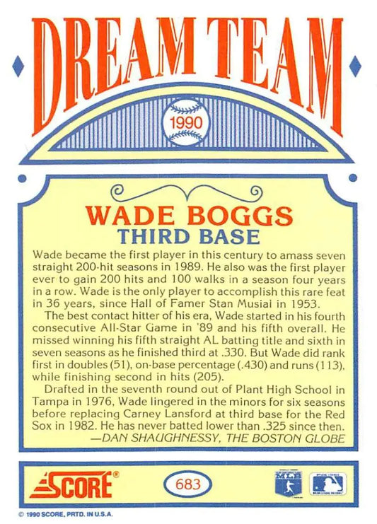 1990 Score #683b Wade Boggs COR DT NM-MT Boston Red Sox Baseball Card