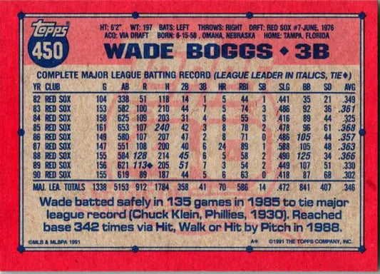 1991 Topps #450 Wade Boggs NM-MT Boston Red Sox Baseball Card