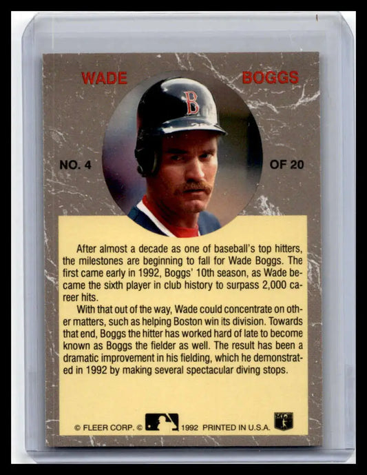 1992 Ultra #4 Wade Boggs NM-MT Boston Red Sox Baseball Card