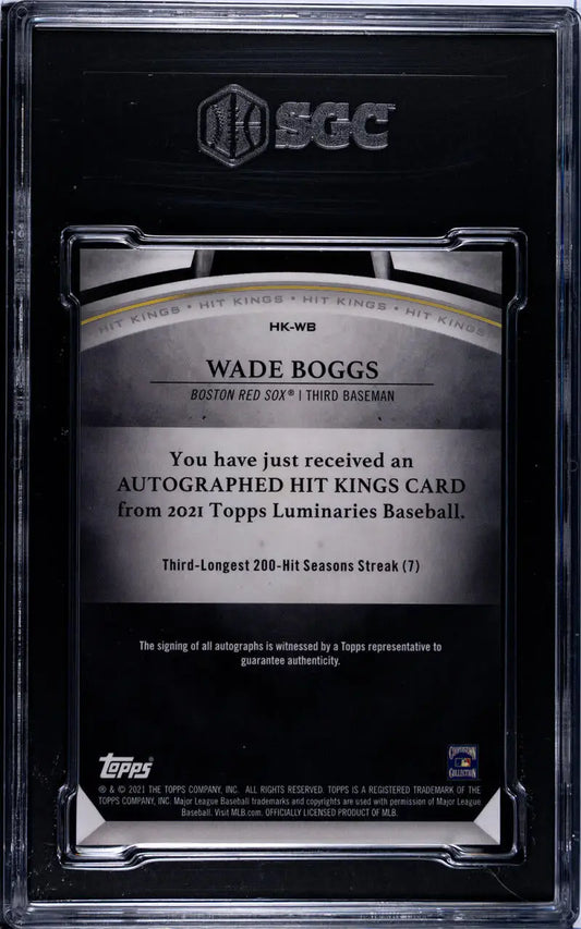 2021 Topps Luminaries Hit Kings Black #HK-WB Wade Boggs SGC 9.5 MINT+ Auto 1/1 Boston Red Sox Baseball Card