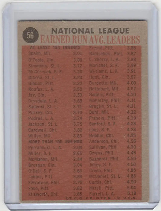 1962 Topps Baseball #58 NL Win Leaders Warren Spahn / Joe Jay / Jim O'Toole