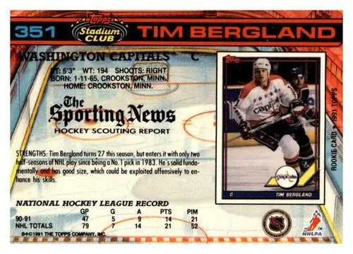 1991-92 Topps Stadium Club #351 Tim Bergland NM Near Mint Capitals