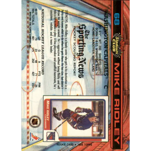 1991-92 Topps Stadium Club #68 Mike Ridley NM-MT Washington Capitals Hockey Card