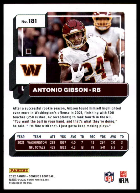 Antonio Gibson 2022 Donruss #181 Washington Commanders
