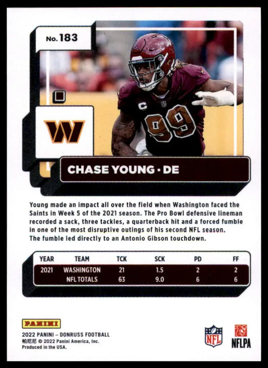 Chase Young 2022 Donruss #183 Washington Commanders