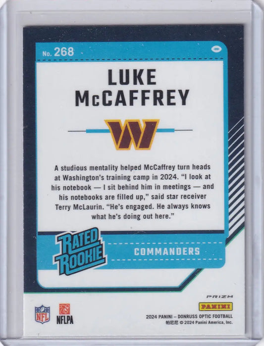 2024 Panini Donruss Optic Purple Shock #268 Luke McCaffrey - Commanders
