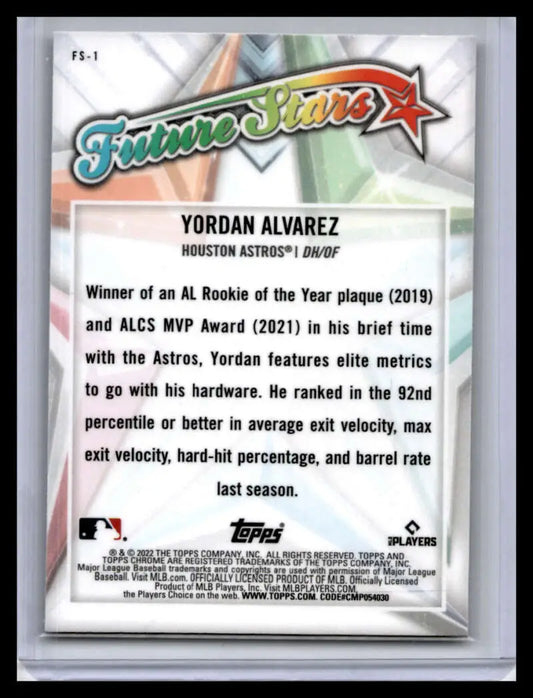 2022 Topps Chrome #FS-1 Yordan Alvarez NM-MT Houston Astros Baseball Card