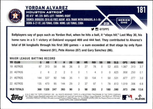2023 Topps #181 Yordan Alvarez NM-MT Houston Astros Baseball Card