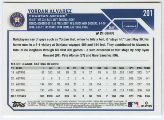 2023 Topps Chrome #201 Yordan Alvarez NM-MT Houston Astros Baseball Card