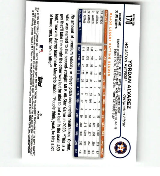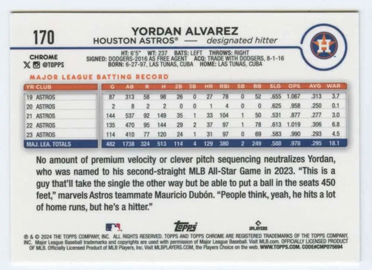 2024 Topps Chrome Refractor #170 Yordan Alvarez NM-MT Houston Astros Baseball Card