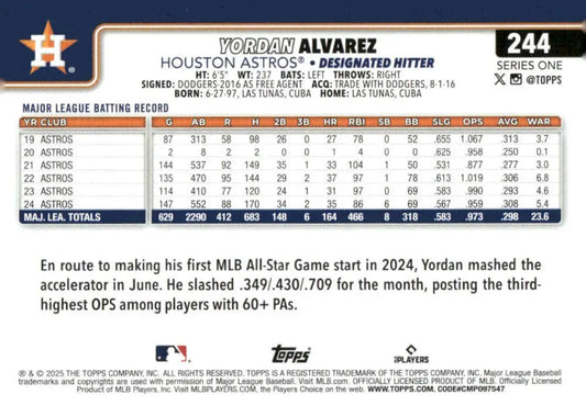 2025 Topps #244 Yordan Alvarez NM-MT Houston Astros Baseball Card