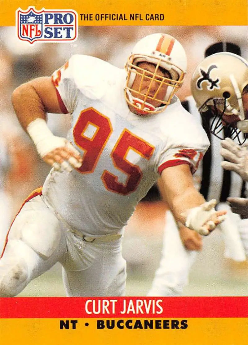 Own a piece of football history with the 1990 Pro Set #657B Curt Jarvis NM-MT Tampa Bay Buccaneers Football Card. This collectible card features a stunning image of Curt Jarvis in his Buccaneers uniform, making it a must-have for any fan or collector.