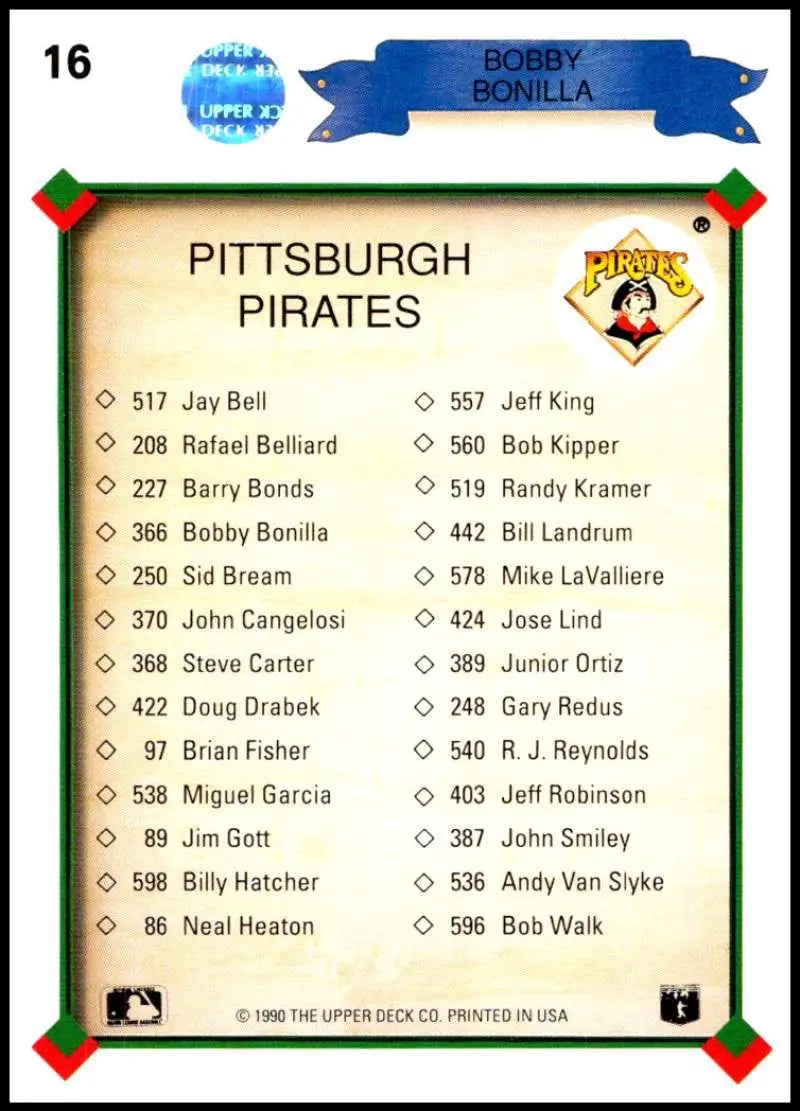 1990 Upper Deck #16 Bobby Bonilla TC NM-MT Pittsburgh Pirates Baseball Card