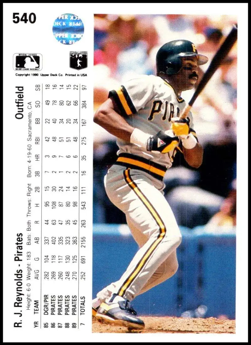 Whether you're a die-hard Pirates fan or a collector looking to add a valuable card to your collection, this 1990 Upper Deck #540 R.J. Reynolds baseball card is a great choice. With its excellent condition and iconic design, this card is sure to be a standout piece in any collection.