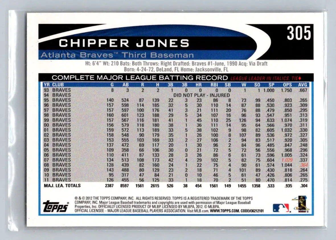 2012 Topps #305a Chipper Jones Atlanta Braves