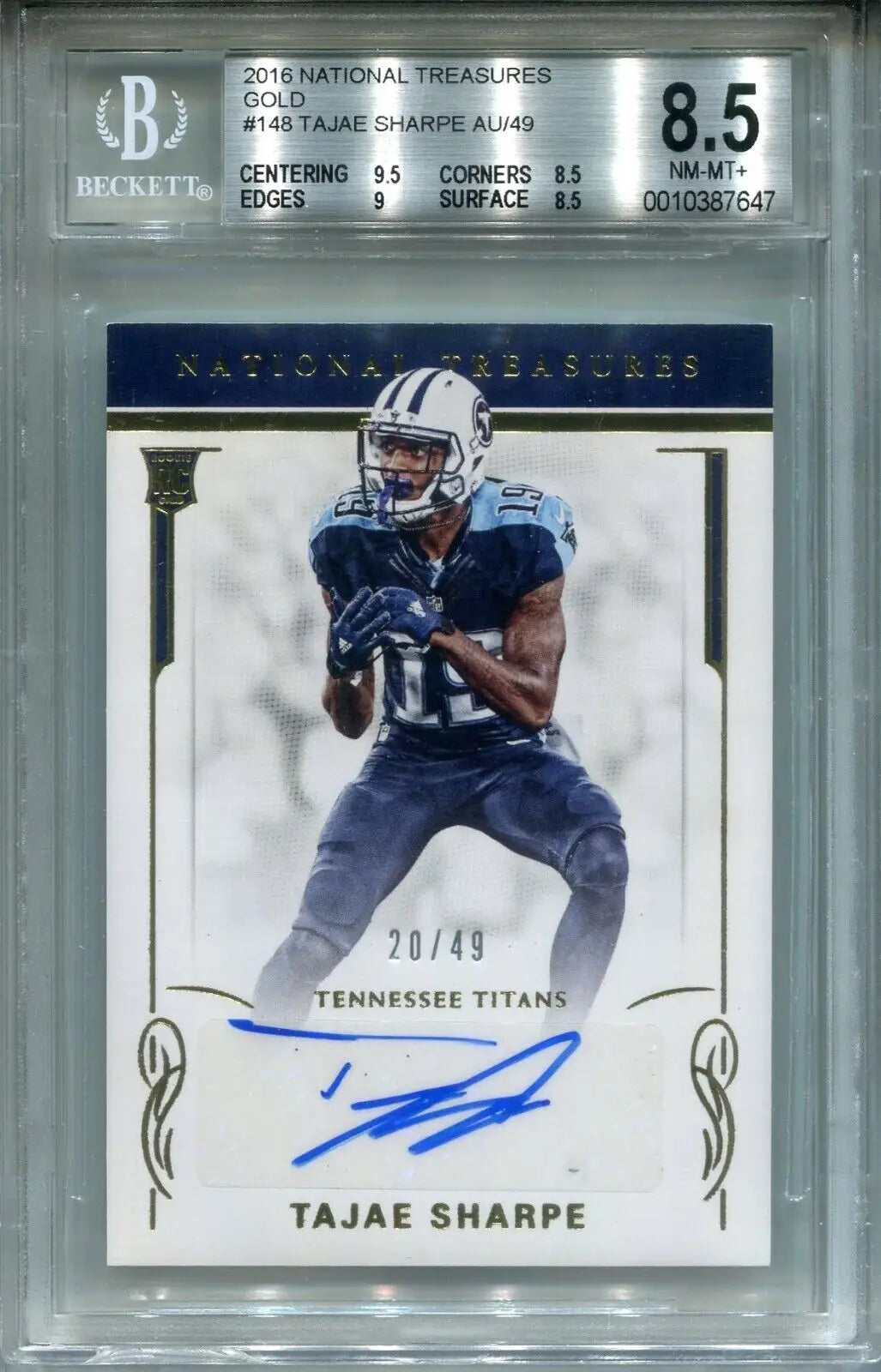 2016 National Treasures Tajae Sharpe 148 Auto RC BGS 8.5 Titans #/49 Gold