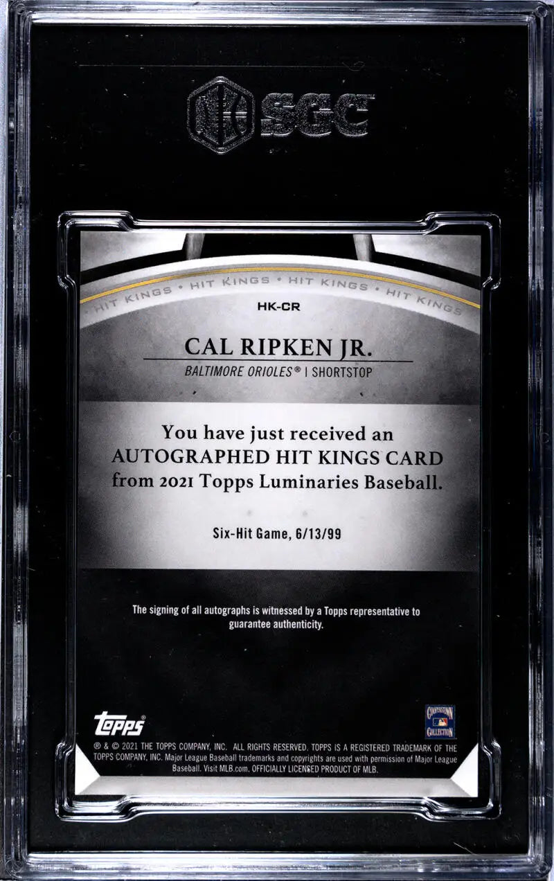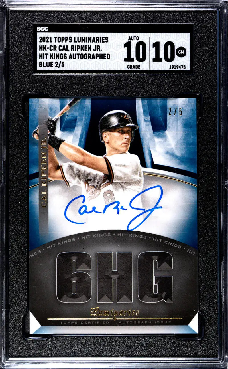 2021 Topps Luminaries Hit Kings Blue #HK-CR Cal Ripken Jr. SGC 10 Gem Auto 2/5 Baltimore Orioles Baseball Card