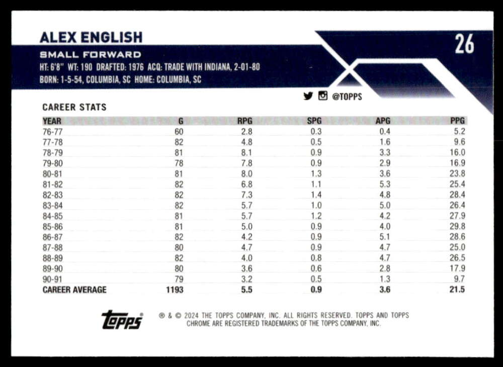 2023-24 Topps Chrome #26 Alex English NM-MT Denver Nuggets Basketball Card