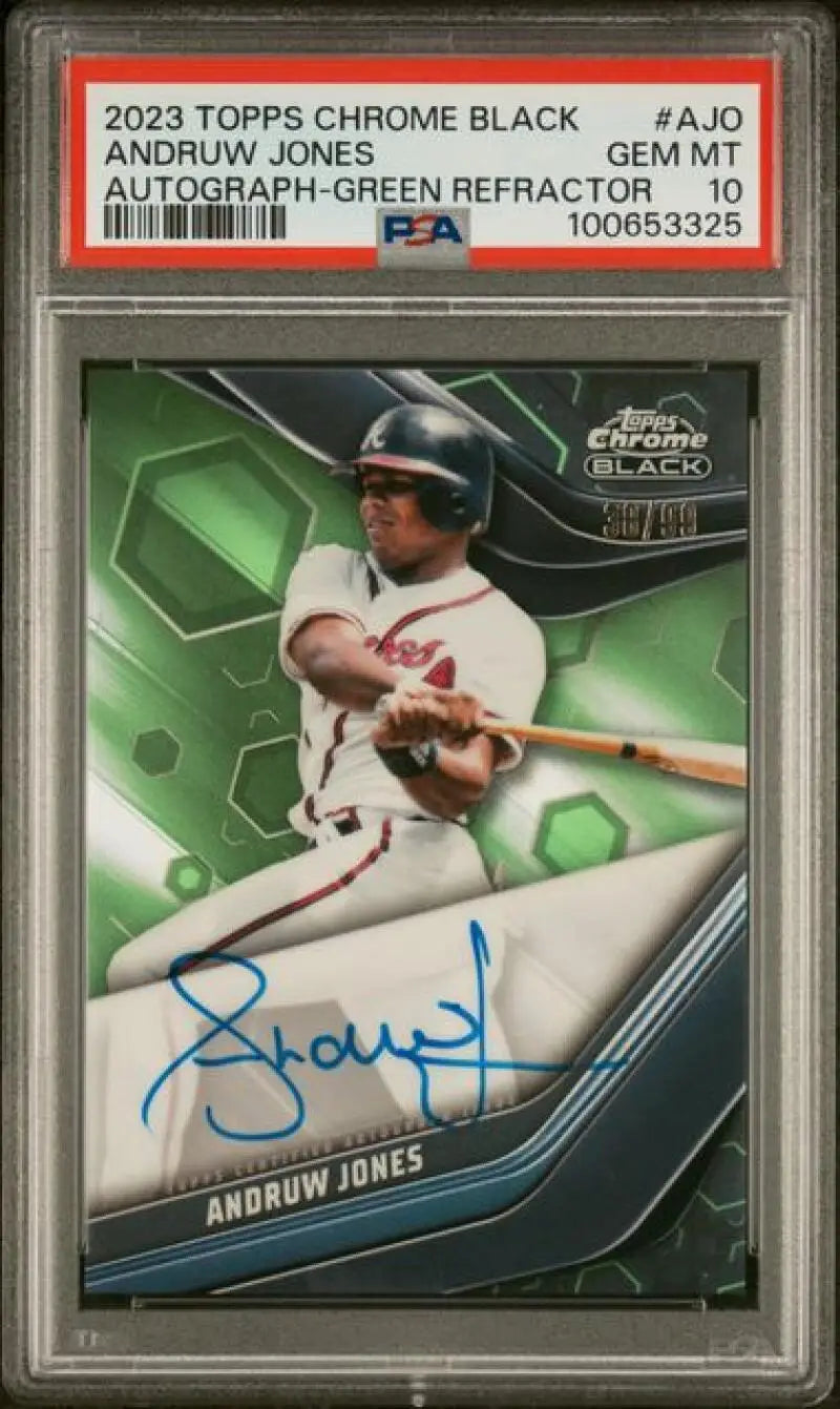 2023 Topps Chrome Black Refractor Green #CBA-AJO Andruw Jones PSA 10 GEM MINT Auto 38/99 Atlanta Braves Baseball Card