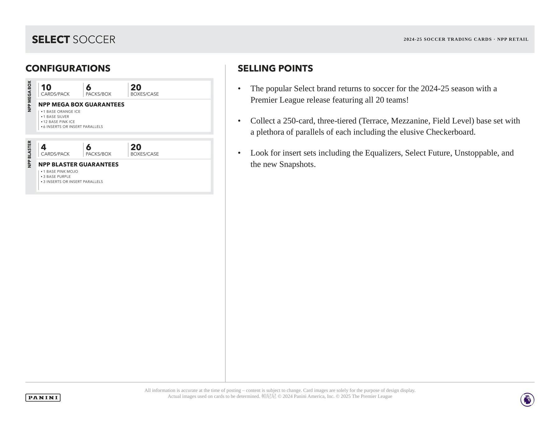 The popular Select brand returns to soccer for the 2024-25 season with a Premier League release featuring all 20 teams!