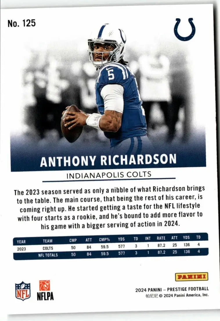 This is a nice example of a 2024 Panini Prestige #125 Anthony Richardson