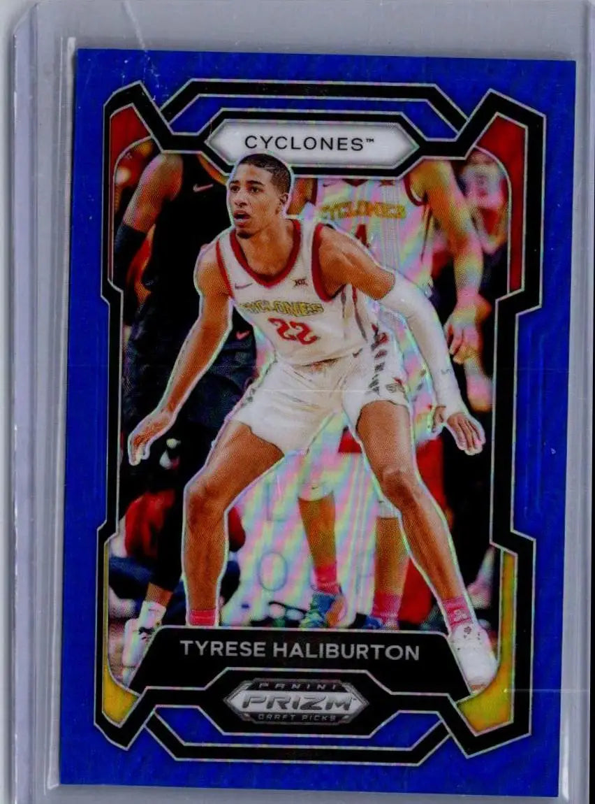 This is a nice example of a 2024 Panini Prizm Draft Picks #65 Tyrese Haliburton Prizms Blue
