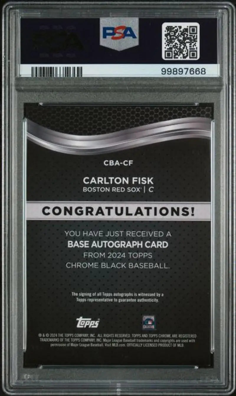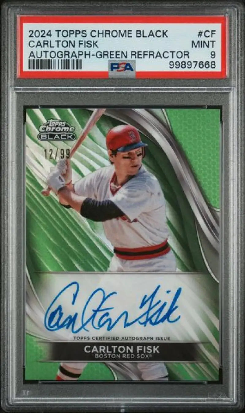 2024 Topps Chrome Black Refractor Green #CBA-CF Carlton Fisk PSA 9 MINT Auto 12/99 Boston Red Sox Baseball Card