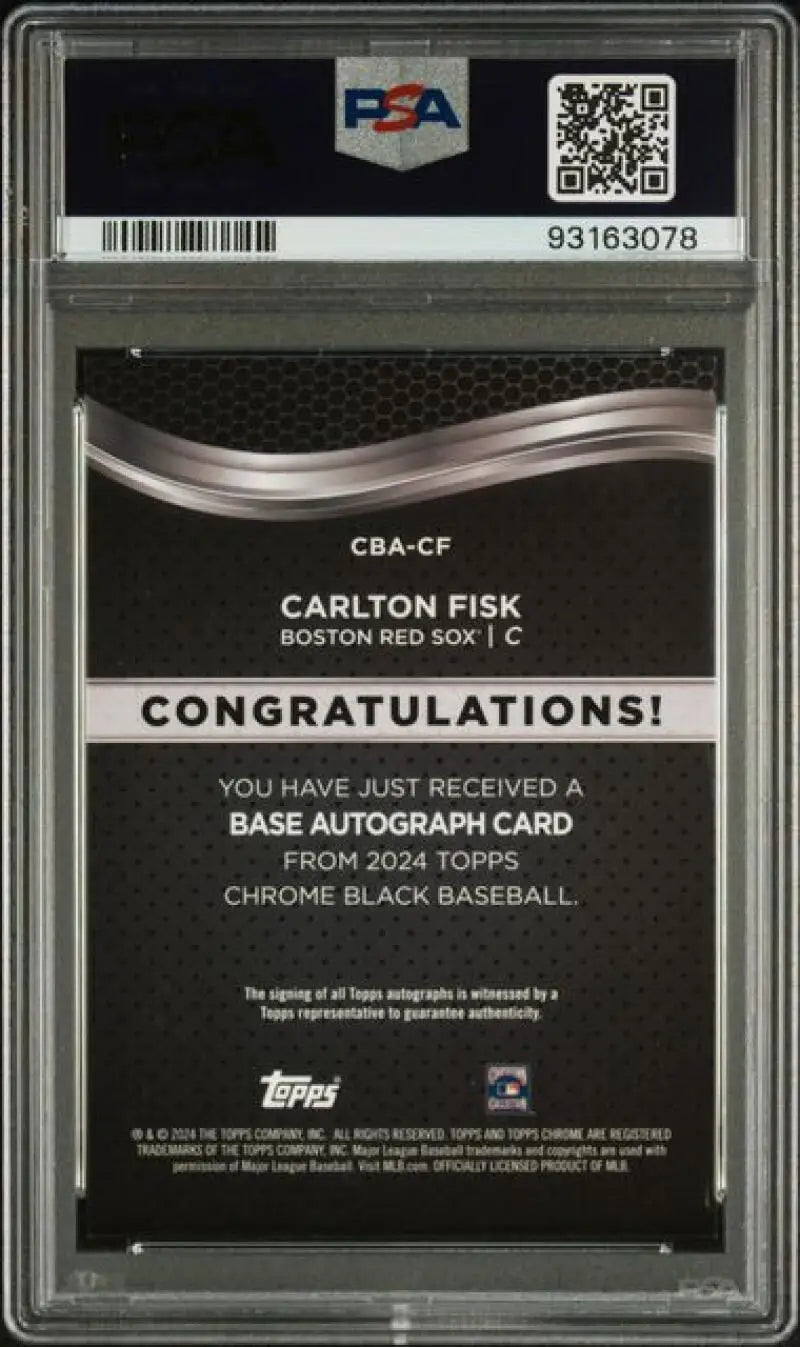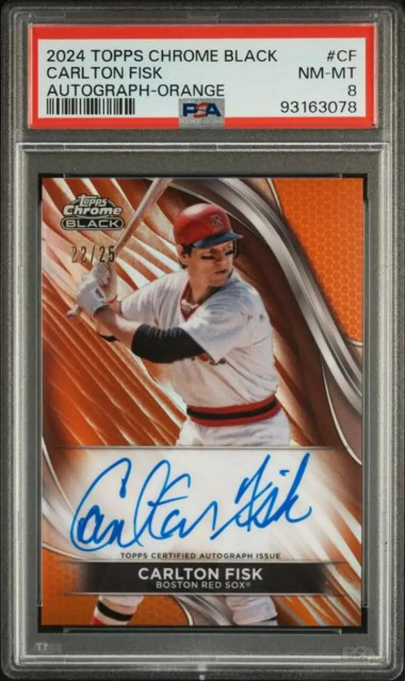 2024 Topps Chrome Black Refractor Orange #CBA-CF Carlton Fisk PSA 8 NM-MT Auto 22/25 Boston Red Sox Baseball Card
