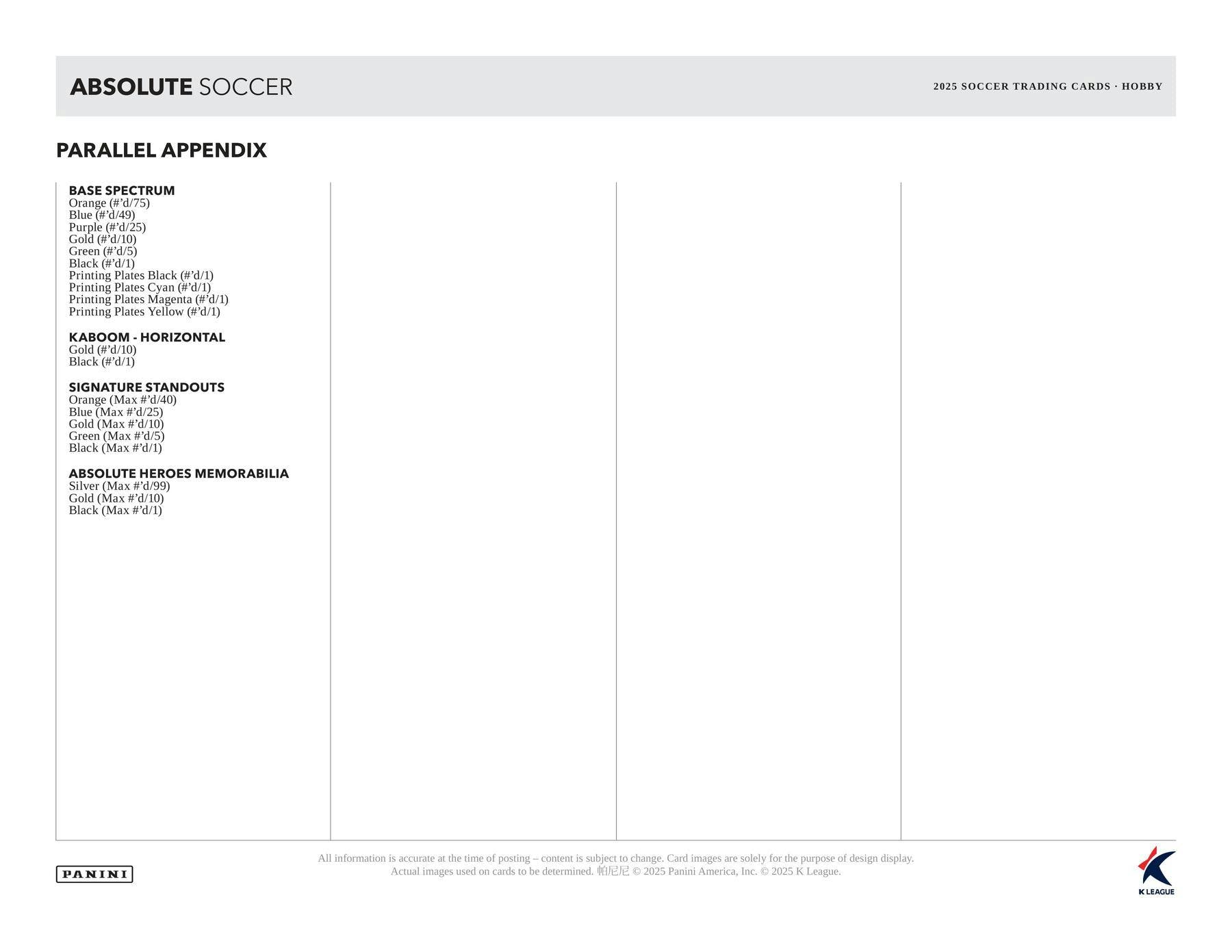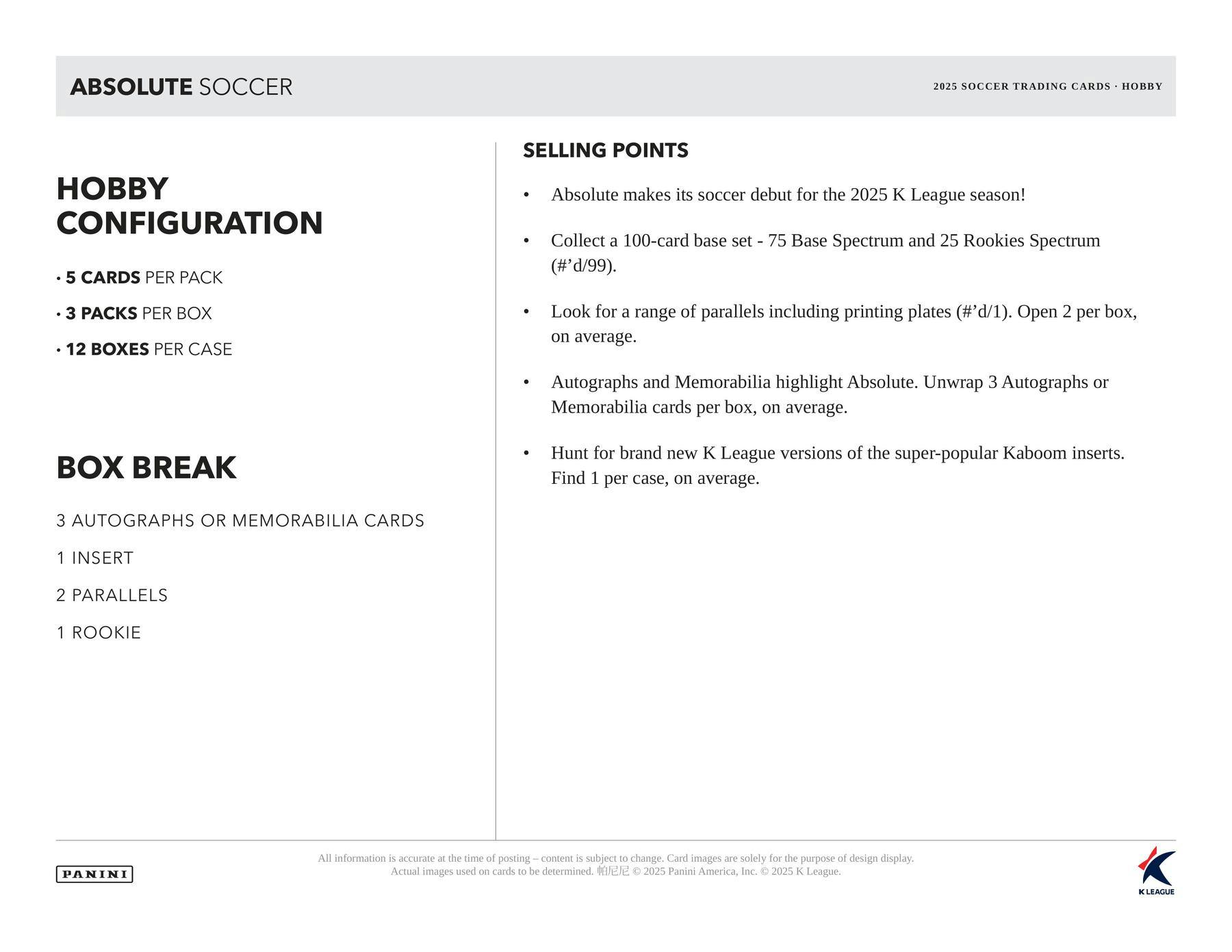 2025 Panini Absolute K League Soccer Hobby Box | Columbia Sports Cards