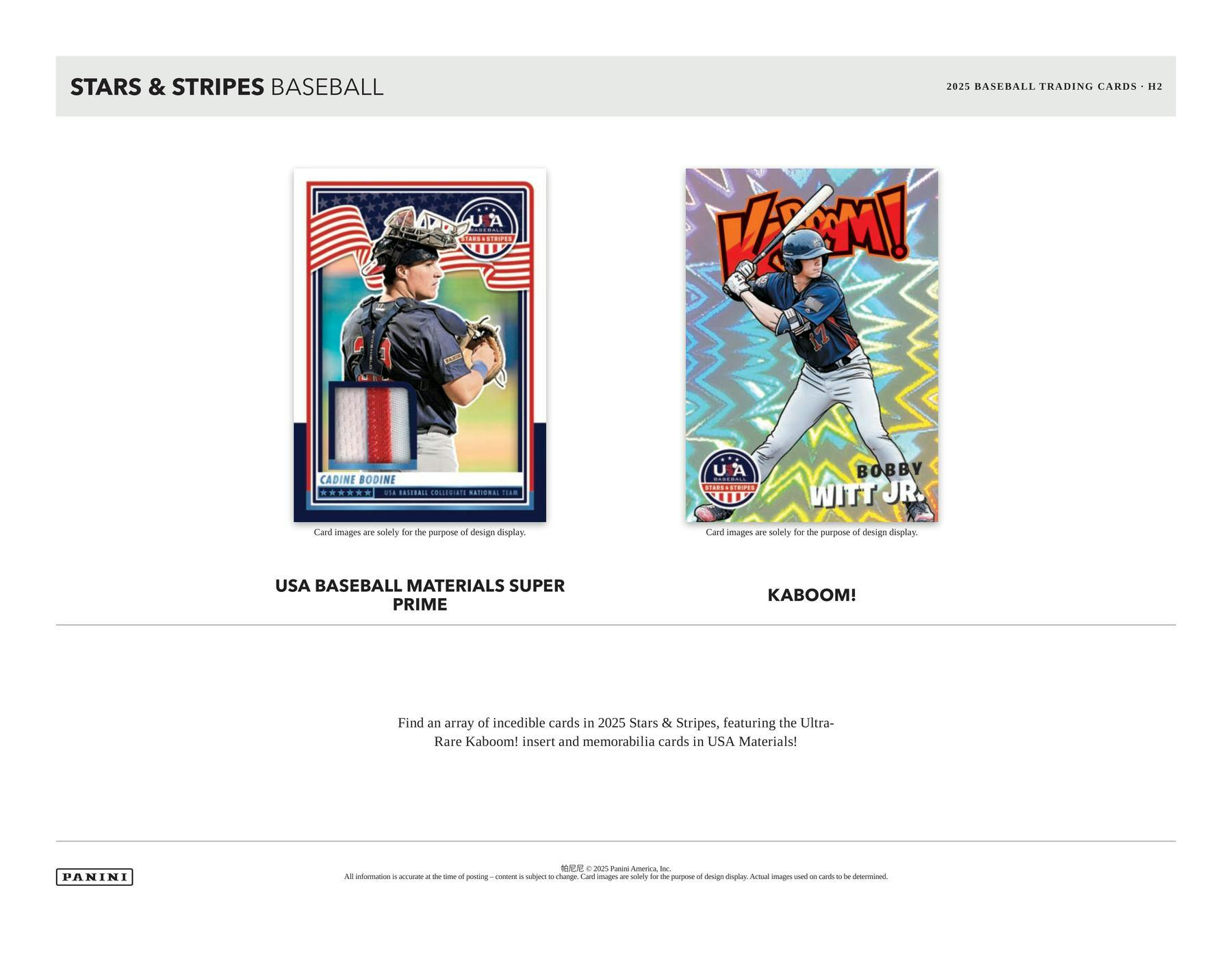 Find an array of incedible cards in 2025 Stars & Stripes, featuring the UltraRare Kaboom! insert and memorabilia cards in USA Materials!