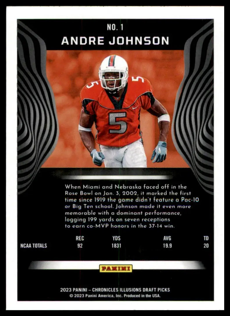 Andre Johnson 2023 Panini Chronicles Draft Picks Illusions #1 Miami Hurricanes