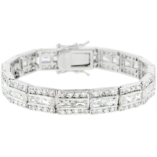 Fashioned in luminescent silver tone and three rows of assorted shimmer our Balboa Cubic Zirconia Bracelet lends sassy tones to classic refinement. Our genuine rhodium finish is achieved using an electroplating process that coats the item with heavy layers of rhodium a close cousin to platinum which gives our jewelry a platinum luster.